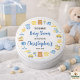 Celebrate the upcoming arrival of a little boy with this adorable baby shower button featuring cute baby clothes and toy illustrations. Perfect for the mom-to-be, family members, or party guests, this fun button adds a playful touch to your baby shower celebration. Great as a party accessory, favor, or keepsake. Pair it with matching decorations for a sweet and coordinated baby boy shower theme everyone will love.
