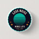 Este botão retrorreflector na moda apresenta a citação elevatória "MENOS RUÍDO MAIS VIDA" em tipografia ousada e vintage, rodeada por um gráfico teal vibrante. Acessório perfeito para quem procura adicionar um toque positivo e enérgico à sua roupa