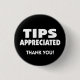Botão apreciado para o setor de serviços. Às vezes, os clientes não sabem quando é apropriado dar gorjeta, e esse botão os avisará que a gorjeta é apreciada e os lembrará. Perfeito para qualquer negócio de serviços pessoais: garçons e serviços de comida, motoristas, barman, cabeleireiros, empreiteiros, reparo de casas, manicurista, massagista, marceneiro ou tatuador. Promova a etiqueta de gorjeta com um botão simples, mas de escurecimento! Fonte branca em preto ou sua escolha de fundo colorido.