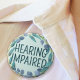 Anuncie as suas necessidades especiais com este crachá bonito de duro de audição de JessicaAmber! Apresenta o slogan 'Audição Imparada', cercado por uma coroa de folhas azuis, sobre fundo azul pastel. Você pode editar o texto conforme necessário. Um presente de excelente para o seu familiar que veste aparelhos auditivos. ⭐ Para obter mais acessórios de surdez úteis, visite minha loja Zazzle.com/Elder_Vitality ⭐ Para pedidos personalizados, envie-me uma mensagem no Zazzle