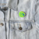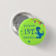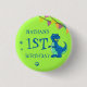 Botão de Festa de aniversário da Paw Verde Azul-Brilhante. O design tem dinossauro fofo, sorridente e azul com pegadas e PRIMEIRO ANIVERSÁRIO escrito em uma fonte engraçada e bonita sobre um fundo verde. Estes botões bonitos de aniversário podem ser facilmente personalizados alterando o nome do aniversariante/menina. Para mais personalizações, contacte-me em mypaperlove2021@gmail.com