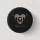 Botão com um design de dois noivos, de cada lado de um coração de ouro. Este item faz parte de um conjunto de casamento que inclui um convite para casamento, um cartão Rsvp e muito mais. (Os elementos dourados do sortido são ouro falso e não folha de ouro.)