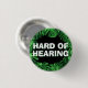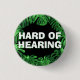 Este botão apresenta o slogan 'Duro de Audição' em uma fonte branca e negrito, cercada por uma borda de folhas verdes de monstera, em um fundo preto. Você pode editar o texto conforme necessário. Um presente de excelente para sua mãe que veste aparelhos auditivos. ⭐ Para obter pinos de surdez mais úteis, visite minha loja: Zazzle.com/ElderVitality ⭐ Para pedidos personalizados, envie-me uma mensagem no Zazzle