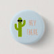 Como diz o ditado, "fofo como um botão"... Este botão apresenta um cacto verde sorridente que veste óculos de sol com o texto "HEY THERE" numa letra manuscrita cor de pêssego.  A cor de fundo é personalizável (o padrão é azul-céu) com um pequeno padrão de bolinhas branca.
