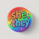 Mostre seus pronomes orgulhosamente com este Ela/Eles prendem crachá. Apresentando uma carta corajosa e colorida e um design amigável, é um acessório perfeito para o veste cotidiano, eventos de orgulho, ou como um presente pensativo. Diversão, estilo atraente Exprime Ela/Eles declaram claramente Excelente para bolsas, jaquetas ou uma maneira simples de celebrar e afirmar identidade. 🌈