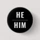 O Sexo Dele Pronuncia um botão de pin simples minimalista preto-e-branco. Texto preto personalizável, fundo branco. Orgulho gay Lgbtq