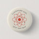 Botão feito sob encomenda com a estrutura curvada do texto e do átomo, ideal para algum evento temático da ciência.