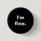 Um crachá com o texto simples "eu estou muito bem" no branco em um fundo preto. Sinta livre mudar a pia batismal e as cores.