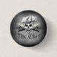 Mostre fora seu orgulho do cozinheiro chefe, vestindo este pino feito sob encomenda legal do crânio do cozinheiro chefe, caracterizando um crânio sinistro legal do cozinheiro chefe que veste seu chapéu do cozinheiro chefe, com as duas facas de cinzeladura cruzadas sharp do cozinheiro chefe, na frente de uma chama preta corajosa. O fundo pode ser removido, e mudado a uma cor de sua escolha. Este produto é um grande presente para o chefe de cozinha, o cozinheiro chefe sous, a linha cozinheiro, o cozinheiro da casa, ou todo o profissional culinário com uma paixão feroz para cozinhar. Visite www.zazzle.com/thechefshoppe e www.zazzle.com/whiskybusiness, para ver mais os crânios temáticos culinários legal projetados pelo sdesiata, em toneladas de produtos oferecidos por Zazzle.