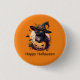 Este malvado botão temático do Halloween é perfeito para a época das Halloween! O botão é projetado com um fundo laranja abóbora e um gráfico de um gato preto vestindo um chapéu de bruxa e com certeza coloca um sorriso no seu rosto. Os morcegos voadores e uma abóbora esculpida adicionam um toque de assustação, e o tom geral é lúdico e divertido. Abaixo do gráfico, o texto "Feliz Dia das Bruxas" é colocado em preto com uma fonte divertida de halloween. #catlovers#halloweencat