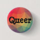 Fila em letras grandes em negrito sobre fundo geométrico do arco-íris