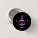 Botão com uma ilustração temática divertida do Dia das Bruxas para amantes de gatos. Um gato preto de olhos grandes vestindo um chapéu de bruxa preta grande com um cinturão roxo rosa ao redor da borda.