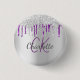 Um fundo metálico de aparência fina prateada, decorado com púrpura e falsa gotas de luz prateada, aparência de pingar. Personalize e adicione um nome, suas iniciais de monograma. O nome é escrito com um script de estilo manuscrito. Perfeito como favoritos para festas ou nomes de etiqueta para festas de aniversário, chás de fraldas, chás de panela e festas de solteira.