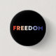 Liberdade, a tipografia moderna de gradiente mostra vermelho branco e azul, botão patriótico. Texto vermelho branco e azul sobre fundo preto editável a cores.