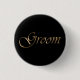 Groom, gold script elegant calligraphy black pin button
