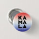 kamala Ka mãe la 3 silabla pronúncia da tipografia moderna preta em cores vermelho e azul gradiente do botão de eleições políticas patrióticas.