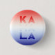 kamala Ka mãe la 3 silabla pronúncia da tipografia vermelha branca e azul moderna de gradiente nas cores gradativas do segundo botão patriótico de eleição política.