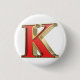 Bóton Redondo 2.54cm Letra K de vidro vermelho