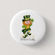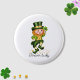 Bóton Redondo 2.54cm Lucky Green Gnomo & Clover em Branco