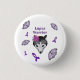 Botão com as minhas ilustrações de um lobo, borboleta roxa e fitas roxas, todas com símbolos de Lupus.