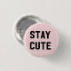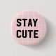 Um fundo comum cor-de-rosa com as palavras "STAY CUTE" numa fonte de camisa desportiva