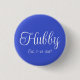Botão de lapela divertido acessório de moda casual com estampa em fundo de cor azul real e "Hubby" em texto branco tipografia lettering design pela loja TheFabricSeal print on demand no Zazzle.com #ZazzleMade https://www.zazzle.com/store/thefabricseal TheFabricSeal Original.
