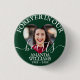 Botão Heart Photo Memorial, cor verde-escura personalizada e ecologicamente sustentável, um design simples e moderno com texto elegante de script caligráfico personalizável, fonte em estilo sans-serif, nome personalizado, data e fotos. "Para sempre em nossos corações" pode ser editado com uma citação personalizada de simpatia. Disponível em tamanhos pequenos, médios, grandes e enormes, em formas quadradas e redondas. Sem ordem mínima. O Fundo do Botão Memorial é um vermelho profundo, você pode mudá-lo em qualquer cor. Botão Memorial Personalizado do Amor