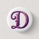 Bóton Redondo 2.54cm Modern Metallic Rosemaling Letter D, Pink/Purple
