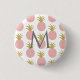 Botão enfeita um padrão cor-de-rosa brilhante e abacaxi dourado com sua inicial.