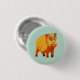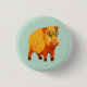 Botão de porco engraçado com uma ilustração de um javali pintado digitalmente com grandes presas e óculos em forma de coração em cores amarela, laranja e azul brilhantes.