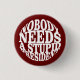 Bóton Redondo 2.54cm Ninguém precisa de um Presidente estúpido
