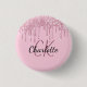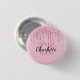 Bóton Redondo 2.54cm Nome de monograma personalizado com brilho rosa