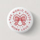 O mundo precisa de mais amor bondade paz citações rosa e vermelho coquette preppy menina coração com laço estética ativista de direitos humanos protesto botão distintivo acessório de roupa presente.