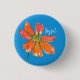 Um alfinete alegre, decorado com uma flor margarida laranja brilhante, com uma abelha a visitar desenhada com tinta e pintada com aquarela num fundo azul real. Você pode alterar a cor do texto e do plano de fundo para o ajustado das suas necessidades.