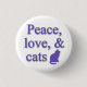 Bóton Redondo 2.54cm Paz, amor, & gatos