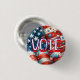 Botão de votação bipartidário. Estrelas vermelhas, brancas e azuis e listram o botão patriótico dos EUA. Bandeira americana.