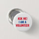 Bóton Redondo 2.54cm Pergunte-me que sou um voluntário vermelho branco