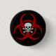 Botão do símbolo de perigo biológico crânio e bósforos em preto, branco e vermelho.