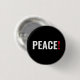 Botão de pino do botão de protesto anti-guerra preto branco e texto vermelho em preto.