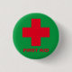 Botões: Ajuda médica de primeiros socorros, ambulância, enfermeira, ponto de ajuda (cruz vermelha no campo verde/militar externo)... Vestuário, botão bolsas. Personalize o texto "Primeiros socorros" para suas necessidades.
