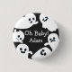 Querida! Botão Chá de fraldas de outono do Black & White Halloween, design com brilhante fantasma voando e texto "Oh Baby!" em preto e branco. Perfeito para a festa do Chá de fraldas de outono do Halloween, bebê esperado em outubro.