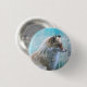 Botão com uma foto de uma raposa fofa sozinha. Colocado sobre um fundo azul de inclinação.