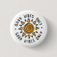 Lembre-se a todos à vossa volta para se manterem positivos com este botão motivacional! Esta design apresenta um sol que foi colorido em amarelo, emoldurado por "BOAS VÍBULAS APENAS" em um texto circular, escrito manualmente.
