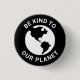 Seja gentil com o nosso planeta, preto e branco Mudança Climática, botão Planeta Terra