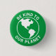 Seja gentil com o nosso planeta, verde e branco Mudança Climática, botão Planeta Terra