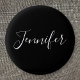 Bóton Redondo 2.54cm Seu nome | Script branco elegante em preto
