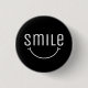 Sempre vista um sorriso. Este botão preto e branco tem a palavra 'sorriso, com um sorriso de cartoonaria por baixo.