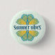Botão de verão bonito com uma bela ilustração de duas borboletas em azul e amarelo e o texto divertido Summer Vibes.