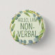 Anuncie suas necessidades especiais com este crachá de autismo fofo de JessicaAmber! Possui o slogan 'Olá, Eu Sou Não-Verbal' em uma fonte estreita, cercada por uma coroa verde de folhas, sobre um fundo verde-claro. Você pode editar o texto conforme necessário. Um presente de excelente para um membro da família autista. ⭐ Para obter mais acessórios úteis sobre imparidade, visite minha loja Zazzle.com/Elder_Vitality ⭐ Para pedidos personalizados, envie-me uma mensagem no Zazzle