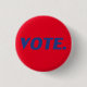 "Vote" letras azuis, botão vermelho de fundo, pino
